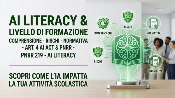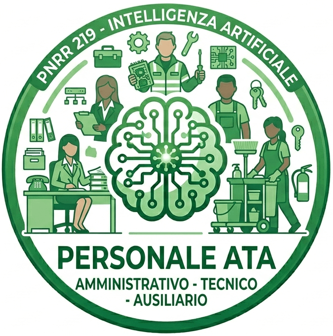 Percorsi rivolti a tutto il personale scolastico: docenti, ATA, DSGA e dirigenti. Obiettivo: comprendere cos'è l'IA, come funziona, quali rischi comporta e cosa prevede la normativa italiana ed europea. Include corsi come "IA a Scuola: cos'è, come funziona, cosa cambia" (20 ore online), "IA per il personale ATA e Amministrativo" (12 ore online) e "IA e Leadership Scolastica: Governance e Piano Strategico" (12 ore online).